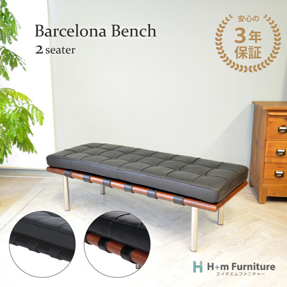 【3年保証】受注生産 バルセロナ ベンチ ミース ファン デル ローエ リプロダクト 二人掛け 2人 本革 | 2シート スツール レザー ソファ ミッドセンチュリー デザイナーズ おしゃれ シンプル【P】