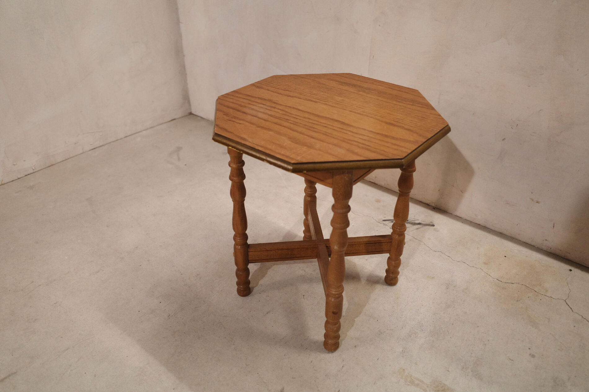 オクタゴンテーブル side table/サイドテーブル Vintage/ヴィンテージ Antique/アンティーク midcenturydesign/ミッドセンチュリーデザイン家具 ヨーロッパクラシックデザイン ウッド 木製 八角形 イギリス ブリティッシュデザイン 店舗什器 展示台 ディスプレイ台【中古】