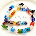 ミッレフィオーリ☆ガラスビーズ フラットスクエア*ミニ カラフルフラワー 約8mm 一連(約45個~)