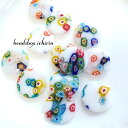ミッレフィオーリ☆ガラスビーズ カラフルフラワー フラットラウンド*あめちゃん* 12〜13mm 20個入りアソート