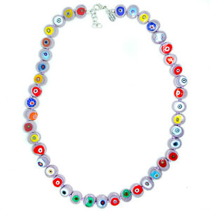 【送料無料】ジュエリー・アクセサリー ムラーノグラスリールネックレスマルチカラーシンビーズミレフィオーリヴェネツィアvetro di murano collana lilla multicolore sottile perline millefiori venice 49cm