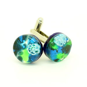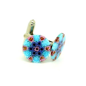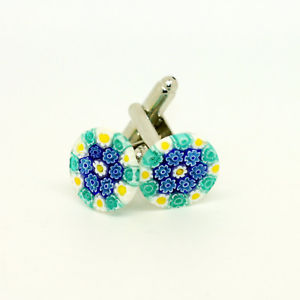 【送料無料】メンズアクセサリ— ムラノガラスカフリンクスblue green white circular murano glass cufflinks with millefiori