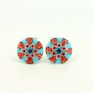 【送料無料】メンズアクセサリ— ムラノガラスカフリンクスred blue white circular patterned murano glass cufflinks with millefiori