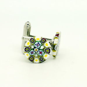 【送料無料】メンズアクセサリ— ムラノガラスカフリンクスwhite yellow red blue circular patterned murano glass cufflinks with millefiori