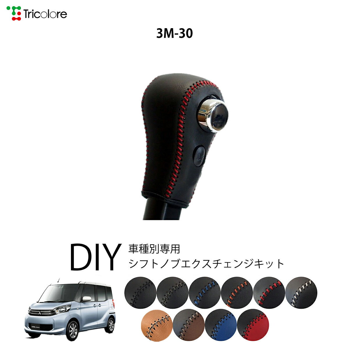 ミツビシ eKスペース B11A 専用 トリコローレ シフトノブエクスチェンジキット シフトノブカバー ギアノブ シフトレバー ノブカバー 本革 レザー 牛革 DIY 巻き替え 巻替え ドレスアップ社外品 内装パーツ 交換 補修 汚れ防止 車種別設計 1bk3m30