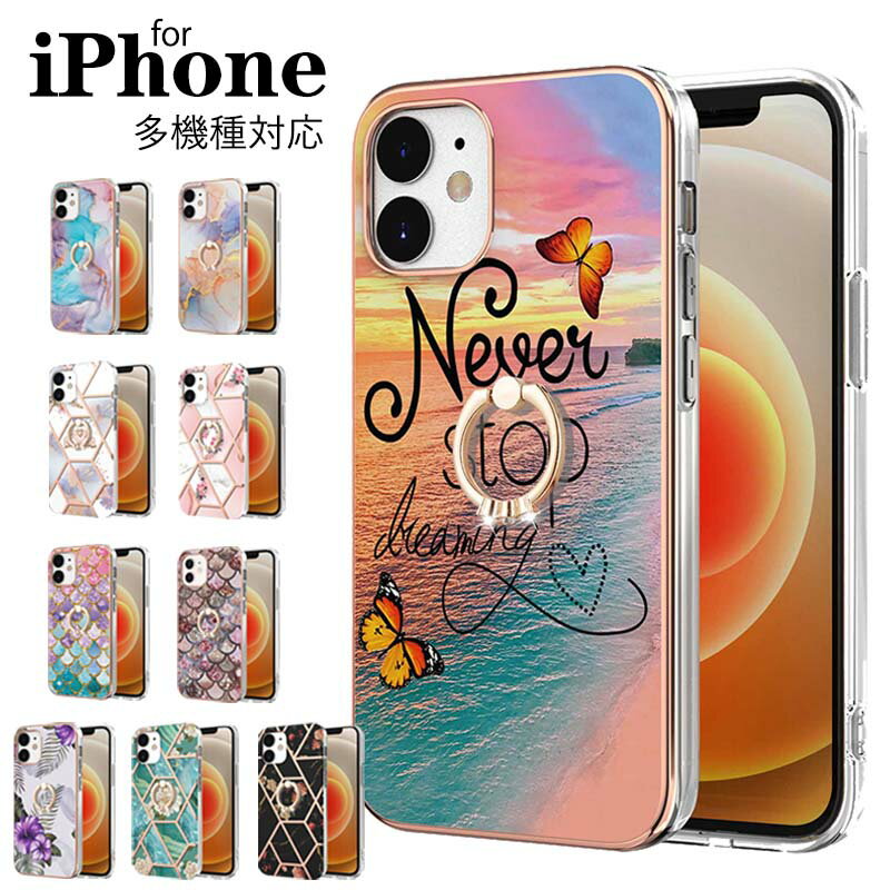 アイフォン iPhone 12ケース 12 miniケース 12 Proケース 12 Pro Maxケース 背面保護 iPhone 11ケース 11 Pro Maxケース X Xs 7 8 SE 2020 ケース 7+ 8 Plusケース iPhone 12カバー 大理石風 耐衝撃 軽量 可愛い オシャレ リング付き イラスト