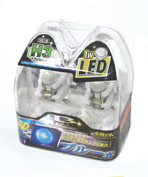 ミラリード スーパーLEDバルブ H3 ブルー S838です。 車検対応、リレーハーネス不要。 フォグランプをファッションランプ化できる。 LED特有のシャープな光。 高輝度1W LED使用。 ※この商品はヘッドライトバルブとしては使用できません。
