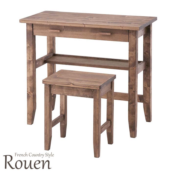 同シリーズのミラー-と合わせてドレッサーに スツールもセットです 商品 ルーアン デスク&スツールセット サイズ デスク本体:W800×D400×H700mm スツール:W360×D280×H420mm 素材 本体:天然木(パイン)オイル仕上げ カラー - 生産 中国 組立品 完成品 備考 そこは湖沿いの美しい小さな町。 静かな時間が流れているこの場所でゆっくりと 休息を とりたくなる。そんなイメージが湧いて くるルーアンの家具シリーズ。 フランスの片田舎をイメージしてデザインされた ルーアンシリーズは、温かみのあるパイ ン材を使 用しています。 パイン材の家具に囲まれていると、なぜかホッとする。それは、ほのかな木の香りのせいかも しれ ません。この香りの中には、体をリフレッシュさ せるという効果があると言われています。 余計な装飾はせず、素材の持つ風合いを生かしたナチュラルさが魅力。 小鳥が鳴き、静かに時が過ぎる田舎の家で過 ごす。フランス人が好むスタイルですが、そんな雰囲気を楽しめるルーアンの家具で、おうちリラックス、はじめませんか ※ラッピング・熨斗には対応しておりません ■お買い求めにあたってのご注意■ お客様からのご注文後、メーカーに在庫の有無を確認・発注させて頂きます。 ご注文が集中した場合など、注文できる状態であってもすでに売り切れである場合がございます。 承ったご注文は可能な限りお届けするよう努めておりますが、やむを得ず入荷をお待ち頂く場合や、 お届けできない場合がございます。予めご了承下さい。 ほぼ全ての商品がメーカー直送です。出荷元指定の運送会社が利用されます。 運送会社の指定はできませんのでご了承ください。