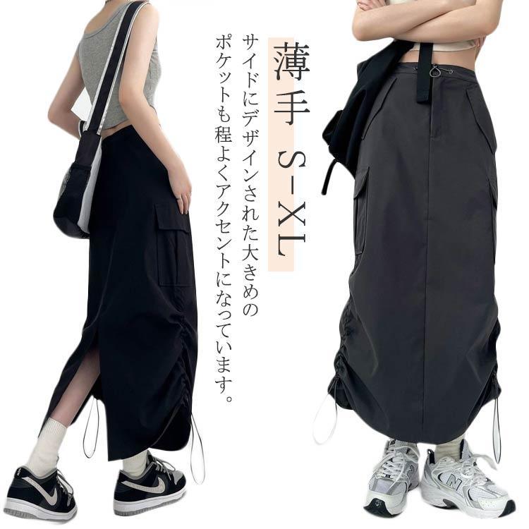 秋 春 裾ドローコード バックスリット スカート カーゴ ミリタリー カーゴスカート スカート レディース ロングスカート Aライン