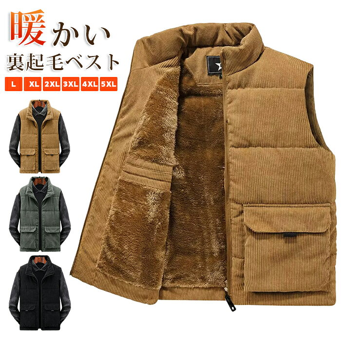 裏起毛ベスト メンズ ベスト コーデュロイ 厚手 立ち襟 チョッキ ジレ 作業着 作業ベスト 多機能 ミリタリー ボアベスト 厚地 ジャケット 防寒 ベスト 40代 50代 暖かい 裏起毛
