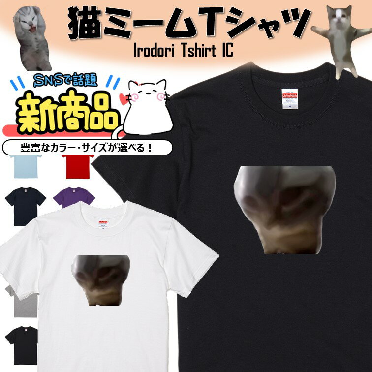 【長袖・ドライ有】猫ミーム Tシャツ【ビックリ猫】 イラスト おもしろ Tシャツ ネタ 文字 猫 ネコ SNS ちぴちぴちゃぱちゃぱ ギフト プレゼント かわいい メッセージ 名言 団体 ウケ狙い 誕生日 記念日 職場 飲み会 推し活 出し物 発表会 学生 綿