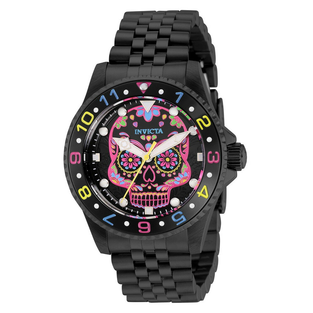 Invictaインビクタ プロダイバー ディア・デ・ロス・ムエルトス メンズ 腕時計 クォーツ 100m防水 ブラック ステンレス 死者の日 スカルデザイン