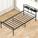 【送料無料】PRTONE ベッドフレーム シングルベッド 収納 宮棚 2口コンセント付き すのこベッド シングル bed frame single 耐荷重300Kg 安定 静音 頑丈 通気 耐久 べっどふれーむ パイプベッド 30cm収納空間 組立簡単 工具付き 一人暮らし 狭い空間向け 組み立て式ベッ