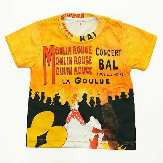 キッズ アート 半袖 プリント Tシャツ トゥールーズ・ロートレック ムーラン・ルージュのラ・グーリュ 総柄 [T-W020-K-RT02]( 子供服 Tシャツ ジュニア 子ども こども tシャツ 柄tシャツ 夏 )
