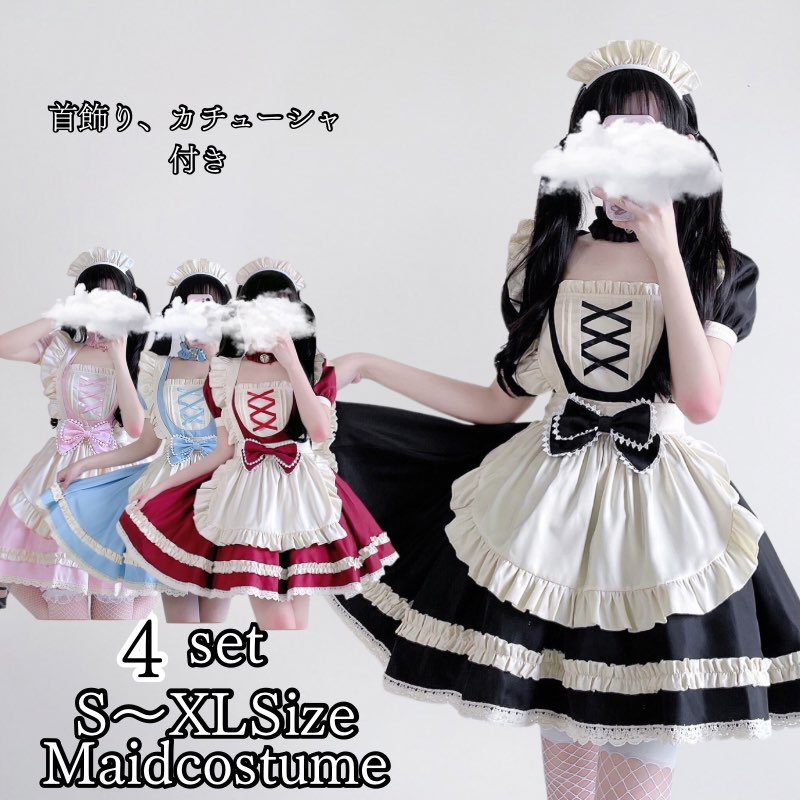 Size Chart S M L バスト(CM) 86 90 94 ウエスト(CM) 68 72 76 着丈(CM) 77 79 81 Size Chart M L XL バスト(CM) 86 90 94 98 ウエスト(CM) 68 72 76 80 着丈(CM) 77 79 81 83 【商品詳細】 セット内容 5点 ワンピース メイドカチューシャ 首飾り エプロン リボン 商品紹介 CheckPoint このメイド服コスプレ衣装は、個性的なデザインとフリルが特徴で、イベントや文化祭、学園祭などの特別な場面に最適です。白と黒、レッドの3色展開で、ガーリーなロリータスタイルを楽しめます。カチューシャがセットになっており、全体のコーディネートを引き立てます。大きいサイズも用意されており、幅広い方にフィットします。忘年会や余興での出し物としても、注目を集めること間違いなしです。 MODEL モデルは「Mサイズ」着用 身長;163CM バスト; 88CM ウエスト;66CM ヒップ;90CM 透け感 なし 伸縮性 適度 生地の厚さ 適度 素材 ポリエステル お取扱方法 注意事項 ●サイズは平置きサイズを測っておりますが、多少誤差が生じる場合がございます。ご了承ください。 ●梱包方法 中身をわからないように梱包しております、送り状には具体的な品名を明記いたしませんのでご安心下さい。 ●商品について 商品の色を表現できるよう努力しておりますが、撮影シーン、モニターや環境設定により、商品のカラーが実際の色と、異なる場合がございます。 ●在庫に関して 掲載商品の在庫は、複数サイトで在庫を共有している為、タイミングにより在庫にずれが生じ、ご注文いただいた商品が欠品となる場合がございます。あらかじめご了承ください。 安心保障 ●サイズ・カラー交換OK♪ ・到着日から3日間対応致します。 ・出荷時・返送時送料はお客様負担となります。 ●返品OK◎ ※イメージ違いによる返品も可 ・到着日から3日間対応致します。 ・出荷時・返送時送料はお客様負担となります。 ※お客様都合の返品・交換はすべて未使用品に限ります。 メイド仮装、ロリータイベント衣装にぴったりのアイテム こちらで購入