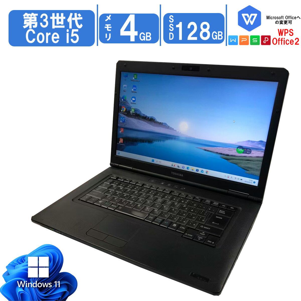 【15.6 型大画面】中古ノートパソコン Windows11 Office搭載 軽量 TOSHIBA dynabook Satellite B552 第3世代CPU メモリ4GB SSD128GB WXGA (1366x768) カメラ 無線 HDMI対応 ビジネス 学習 在宅ワーク 送料無料