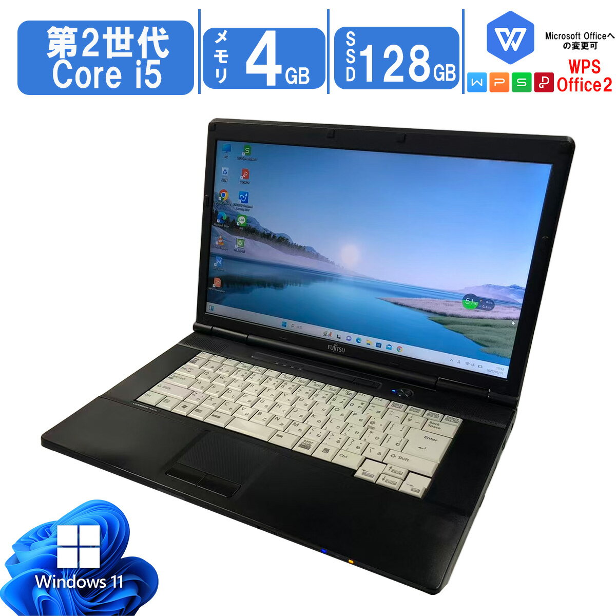 【15.6型大画面】中古ノートパソコン Windows11 Office搭載 15.6型 富士通 LIFEBOOK A561 第2世代CPU Core i5 メモリ4GB SSD128GB 15.6インチ (1366x768) 無線 HDMI対応 ノートパソコン 送料無料 あす楽対応