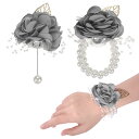M METERXITY 1-セット リストコサージュとブトンニエールセット 人工バラ リストコサージュとメンズコサージュ ウェディング/パーティー/プロム用 フラワーリストコサージュセット[ライトグレー]