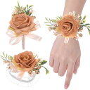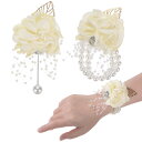 M METERXITY 1セット リストコサージュとブートニアセット 人工バラの花リストとメンズコサージュ 結婚式 パーティー プロム 装飾用 フラワーリストコサージュセット[ホワイト]
