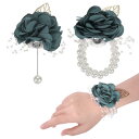 M METERXITY 1セット リストコサージュとブートニアセット 結婚式/パーティー/プロム用 人工ローズフラワーリストとメンズコサージュ フラワーリストコサージュセット[ダーク緑]
