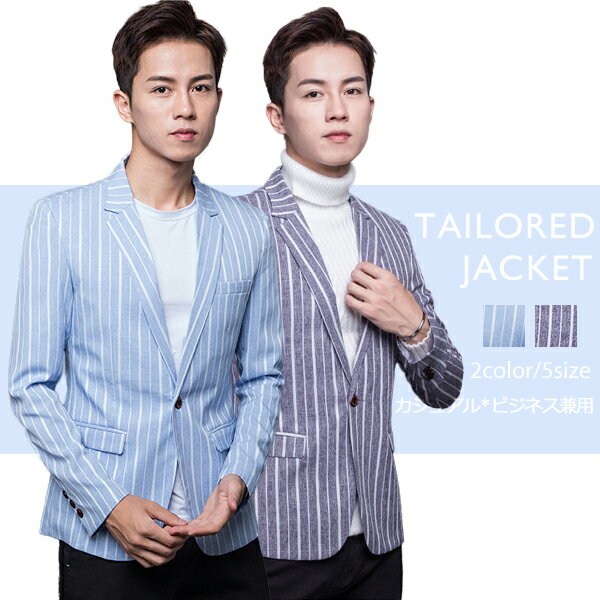 【在庫一掃】【返品不可】ジャケット メンズ テーラード ジャケット ブレザー サマー テーラード 春秋ジャケット 長袖 メンズテーラード ビジネス 紳士用 通勤 カジュアル ストライプ アウター jacket 細身 春 秋 aaa