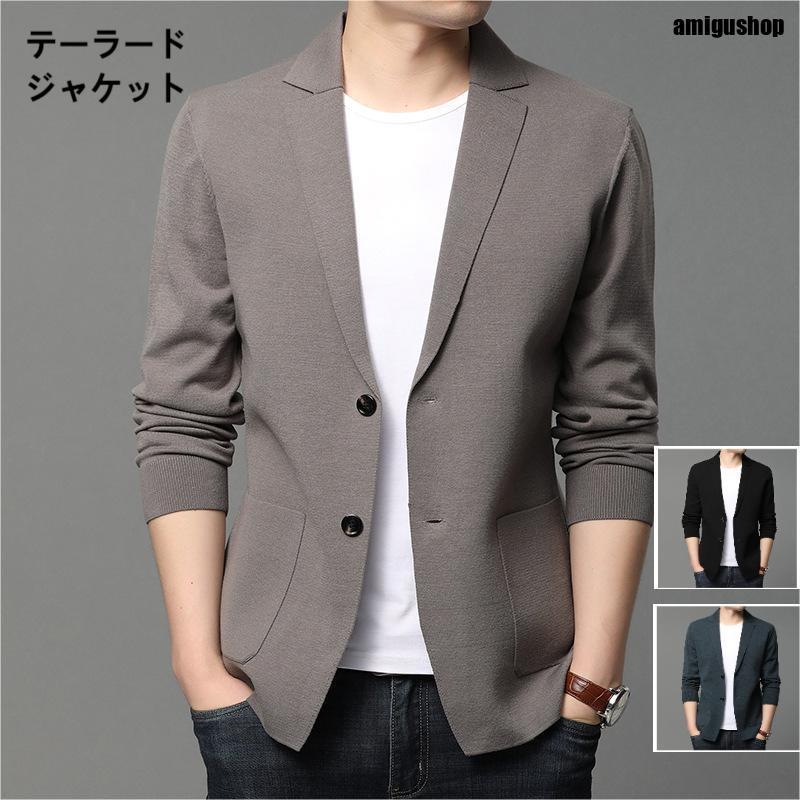 ニットカーディガン メンズ テーラードジャケット 無地 長袖 前開き トップス カジュアル ボタン ポケット付き 春秋 秋新作 きれいめ おしゃれ
