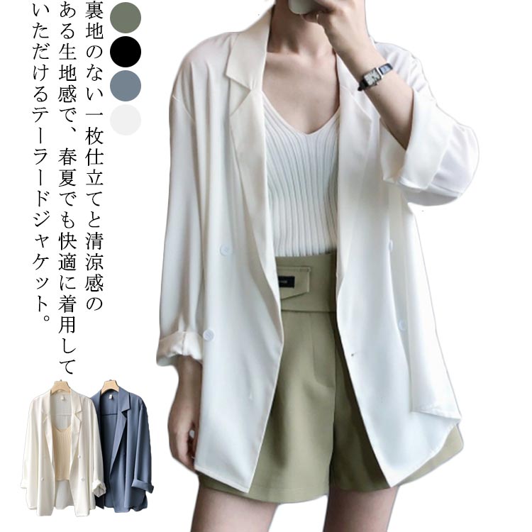 ジャケット レディース テーラードジャケット シフォン サマージャケット 薄手 アウター 軽い 羽織り 長袖 ゆったり 裏無し 軽い 薄い 大きいサイズ 紫外線 UV 涼しい 洗える OL オフィスカジュアル フォーマル 通勤 シンプル 無地 春服 春 夏服 夏 秋服 服 秋 送料無料