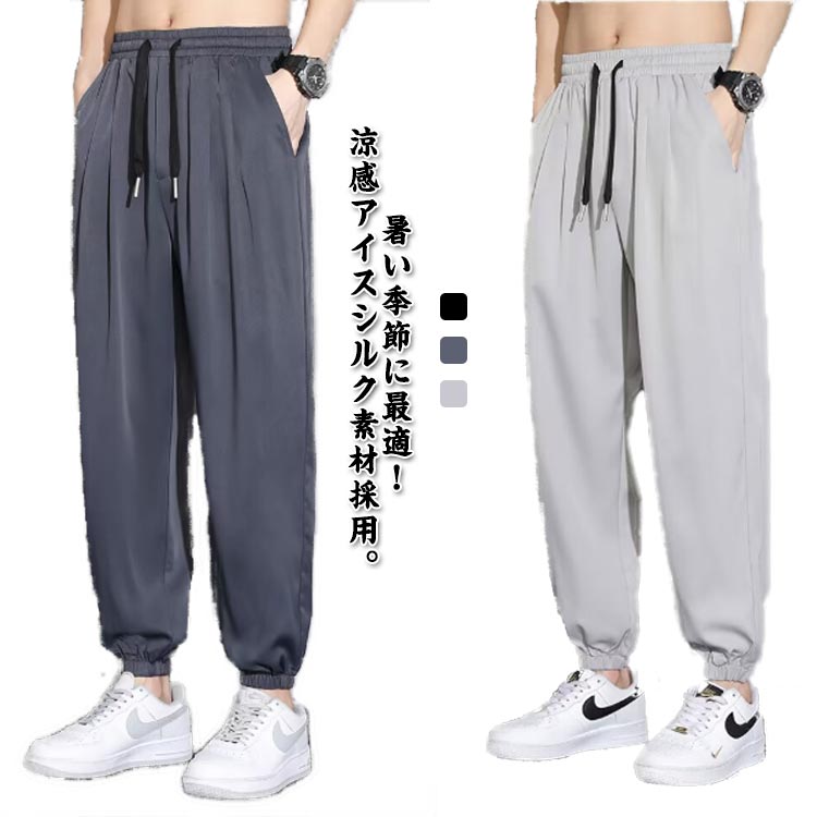 メンズ アイスシルクパンツ アイスシルクロングパンツ サルエルパンツ 薄手 通気 ストレッチパンツ 涼しい 夏 春 秋 uvカット 涼しい 接触冷感 ロングパンツ スポーツパンツ 無地 速乾 軽量 トレーニングパンツ スウェットパンツ スポーツウェア 送料無料