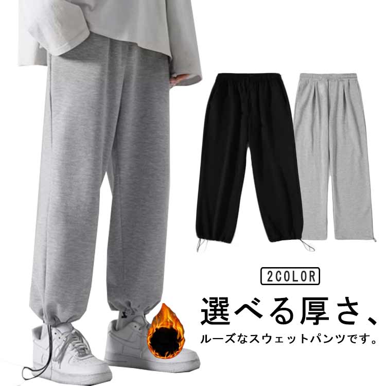 無地 カジュアルパンツ スウェットパンツ 選べる厚さ スポーツ 裏起毛 L 秋 イージーパンツ トレーニング メンズ 薄手 大きいサイズ ジョガーパンツ リラックスパンツ ズボン口2WAY 体型カバー 春 夏 ジム 冬 S M L XL 2XL 3XL ワイドパンツ