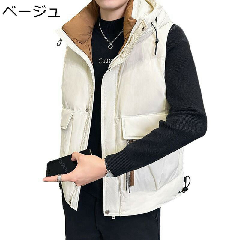 ダウンベスト メンズ フードベスト 秋冬 大きいサイズ ショート丈 ビッグポケット 韓国 カジュアル 厚手 防寒 保温 暖か ゆったり 冬服 日常 旅行 アウトドア スポーツ