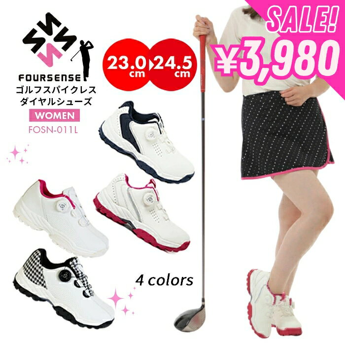20%OFFクーポン配布中!まるでオーダーメイドみたいな履き心地を実現したダイヤル式シューズ ゴルフシューズ 運動靴 FOURSENSE レディース スニーカー FOSN-011L シームレス スポーツ 靴 ウィメンズ 婦人 女性 スパイクレス パークゴルフ ゴルフ用