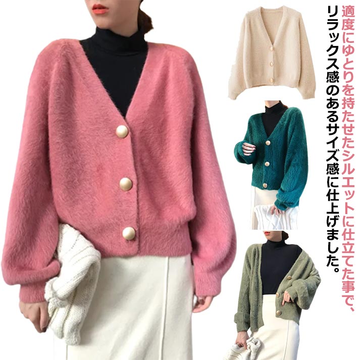 長袖 カジュアル ニットカーディガン Vネック カーディガン 防寒 アウター レディース レディース モコモコ ニットコート ゆったり 重ね着 羽織り 無地 秋冬 冬服 きれいめ 韓国 ふわふわ 春 秋 冬 暖かい