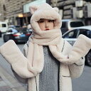 全5色 マフラー 帽子 アニマル 一体型 手袋 くま耳 耳付き レディース ボア モコモコ ベア キュート かわいい 防寒 あたたかい 冬
