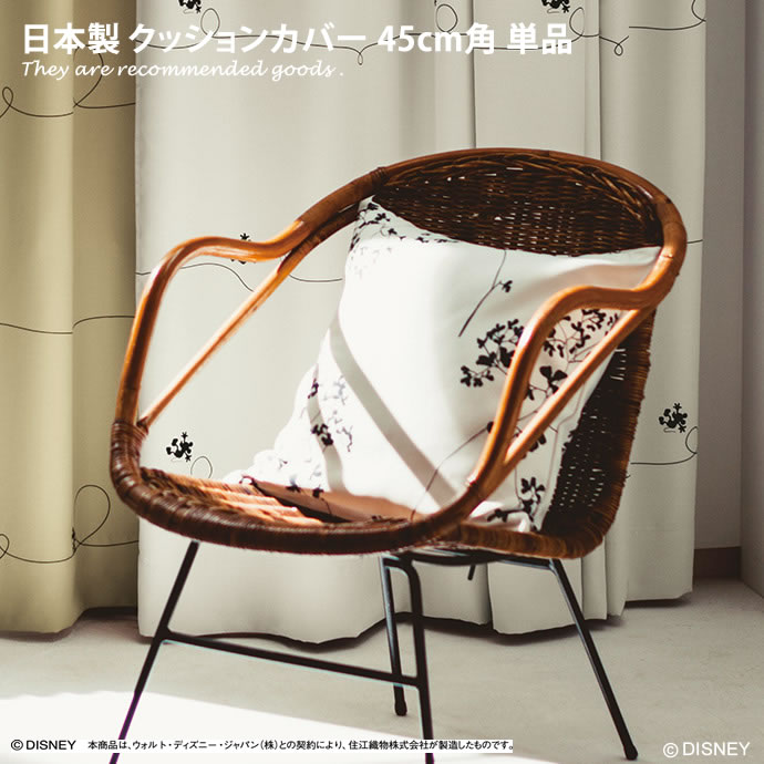 【MAX50%OFF! 12/4&12/5限定★】Twig MICKEY クッションカバー leaf パープル 45cm×45cm モダン トウィッグリーフ ミッキーマウス アイボリー モノトーン シルエット ミッキー 日本製 ディズニー
