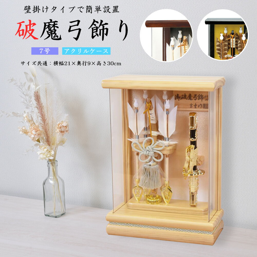 破魔弓 壁掛け 選べる 破魔矢 コンパクト ミニ サイズ おしゃれ 初正月 お祝い 男の子 7号 (高さ 30cm) 茶 白木 健 木目 ナチュラル かべかけ 小さい 破魔矢飾り アクリルケース モダン マンション ケース飾り 日本製 国産 手作り 縁起物 人気 小型 玄関 魔除け 厄除け 2026