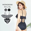水着 体型カバー レディース ワンピース モテカワ モノキニ セクシー フリル フリル オトナ女子 チェック柄 黒 オールインワン レースアップ バックシャン おしゃれ 通販 トレンド ドットチュール フレア バンドゥ M L XL LL mizugi