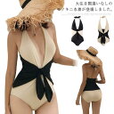 水着 ビキニ ワンピース 送料無料 リボン バイカラー セクシー モノキニ オールインワン 体型カバー 新作 リゾート レディース Vカット モテカワ