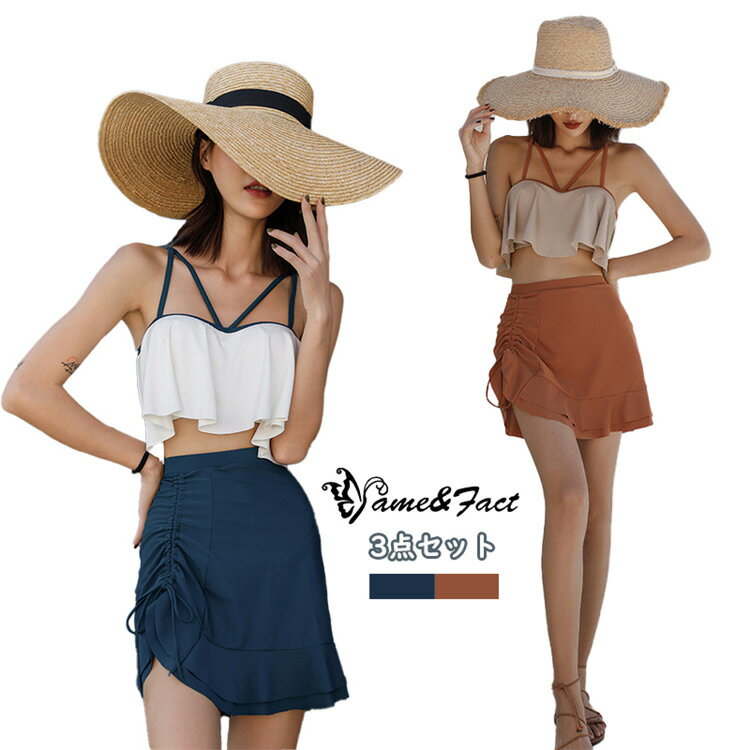水着 レディース 体型カバー 3点セット ビキニ スカート パレオ セパレート ワイヤー入り タンキニ フリル シースルー オトナ女子 大きいサイズ マタニティ かわいい モテカワ水着 セクシー 女性 無地 ママ水着 20代 30代 40代 韓国 送料無料