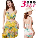 水着 体型カバー ビキニ ワンピース レディース 3点セット 花柄 ラッシュガード 可愛い 日焼け止め セパレート パッド付 モテカワ フレア セクシー 太もも お尻 お腹カバー ぽっちゃり 盛れる 花柄 黒 ボタニカル 露出控えめ お洒落 夏 スイミング スイムウェア 水泳 M/L/XL