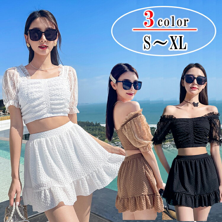 【期間限定:クーポン利用で800円OFF!】水着 レディース ビキニ タンキニ オフショル パフスリーブ スカート フリル 女子セパレート 大きいサイズ かわいい 上下セット オトナ ビーチ 海 プール モテカワ水着 セクシー 女性 ママ 韓国