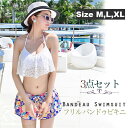 セットアップ 大きいサイズあり 体型カバー水着ビキニ 水着 レディース モテカワ水着 大人可愛い 花柄 レース レディース 上下とフリルパンツのセット ホワイト 白色 Mサイズ Lサイズ XLサイズ 大きいサイズ 女性用