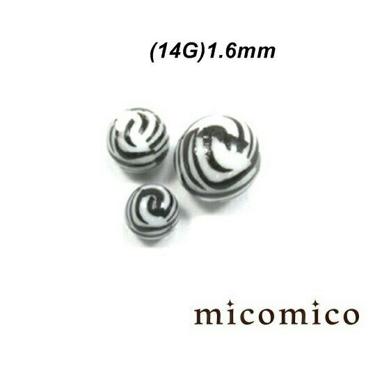 UV Zebraネジボール (14G)1.6mmボディピアス キャッチ パーツ UVアクリル ネジボール ゼブラ モノクロ シマウマ ボール サイズ 5mm 6mm 8mm 14G 14ゲージ