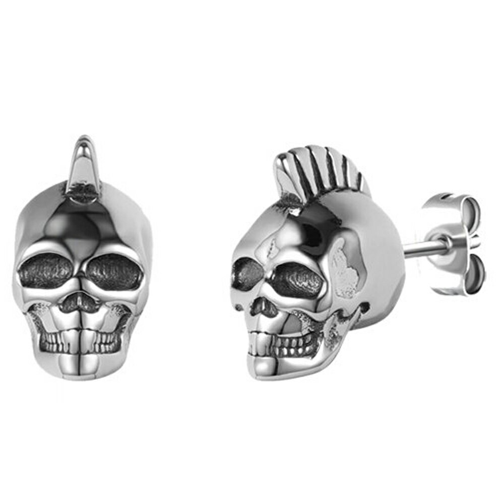 モヒカン頭のドクロをモチーフにしたステンレス製のキャッチピアス。 不気味なモヒカンの髑髏が存在感をアピールしてくれるステンピアス。 ポストが真っすぐのスタッドピアスは装着もしやすく、耳たぶのイヤーロブだけでなく、軟骨ヘリックスやコンクやルークにもつけやすい。 ポストの素材はもちろん、デザインもキャッチ部分もステンレスなので、つけっぱなしでも劣化しにくく、綺麗で高級感もあり男性からも女性からも人気のステンレスピアスです。 ステンレスの銀色シルバーの輝きがデザインを際立たせるステンレス製ピアス。 メンズでもレディースでも使えるのでペアルックやプレゼント、友人や友達、彼氏や彼女とおソロコーデも! 誕生日ギフトやクリスマスの贈物にもオススメです。 スペック 画像をご参照ください 素材ステンレススティール備考・表示は1個の価格です。(両耳分ご必要な場合は数量2にてご注文ください。)・写真はイメージです。お客様のモニターにより商品の色やイメージが異なる場合があります。・スペックサイズは目安としての参考値です。多少誤差がある場合がございますので予めご了承ください。