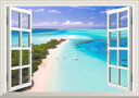 絵画風 壁紙ポスター (はがせるシール式) -窓の景色- ビーチ 海 砂浜 モルディブ バケーション 【窓仕様/トリックアート】 キャラクロ BCH-001MA1 (A1版 830mm×585mm) <日本製> ウォールステッカー お風呂ポスター