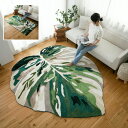 モンステラ柄/リーフ形アクセントラグ【モンステラ(約) 110×190cm(長方形)/160×190cm(葉形)/200×240cm(葉形)】洗える ウォッシャブル おしゃれ かわいい デザイン すべり止め付き