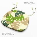 椅子用 クッション 本体 バテイ型 日本製 約43×38×4cm モンステラ グリーン シート チェアパッド 綿100% 両面 ひも付き ウレタンクッション 緑系 草花 植物 葉柄 北欧系 ウォッシャブル 馬蹄型