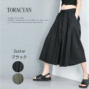 モード系 ブラックリボン付き アシンメトリー ゆるひら スカート レディース 9分丈 ドレープ ウエストゴム ガウチョ きれいめ ゆったり 膝下 ひざ下 ロングスカート ギャザー