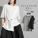 裾変形デザイン Tシャツ レデイース 春 夏 半袖 大きいサイズ ワイド 無地 異素材 サイドファスナートップス クルーネック ラウンドネック モード系 カジュアル 送料無料