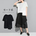 ラップ風パンツ パンツ レディース ボトムス ワイドパンツ レイヤードパンツ モード系 変形 ラップパンツ カフェパンツ ロングパンツ アシンメトリー 変形 重ね着風 ウエストゴム ゆったり とらみ 送料無料