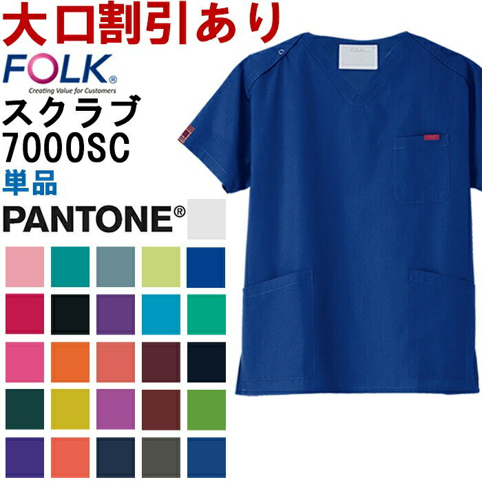 【お買い物マラソン×P2倍】今だけ スクラブ 白衣 医療 PANTONE パントン スクラブ 7000SC SS-4L FOLK フォーク カラフル 32色 ユニセックス メンズ レディース